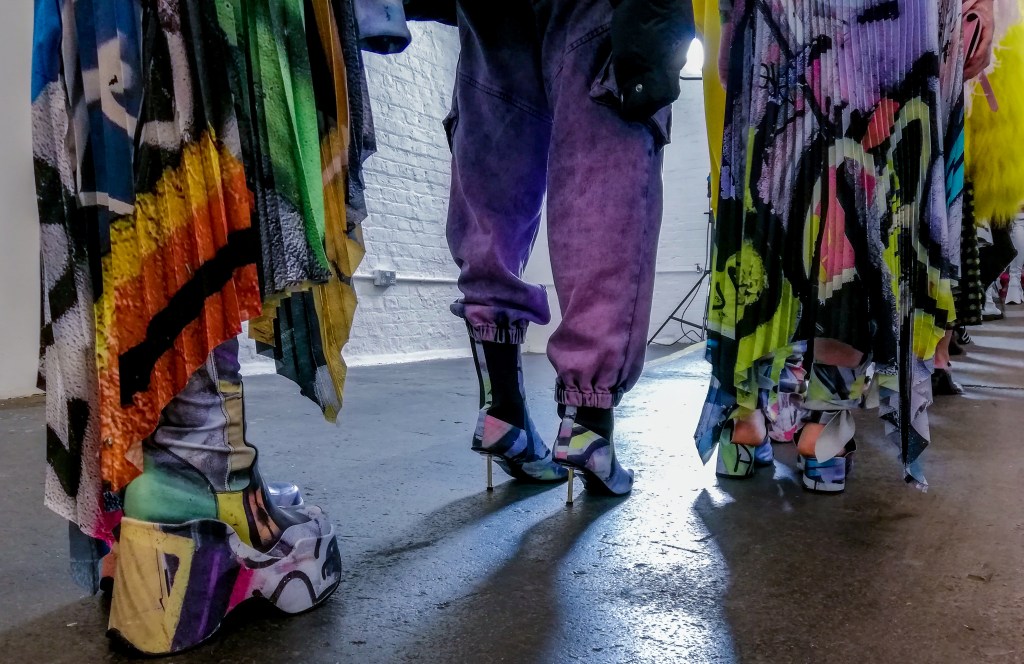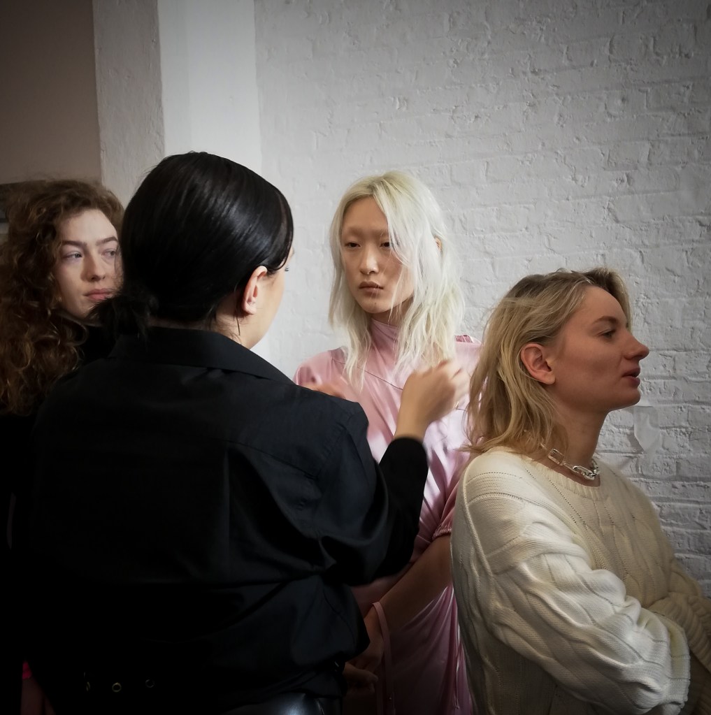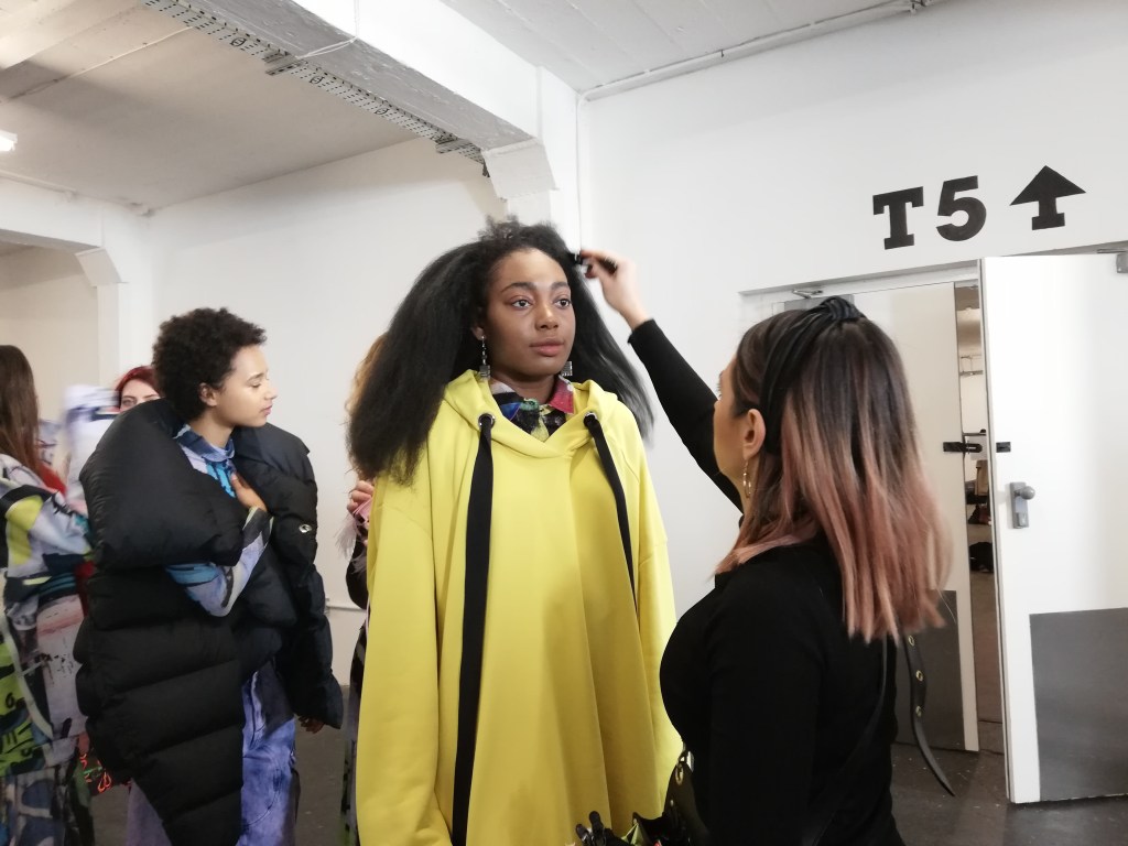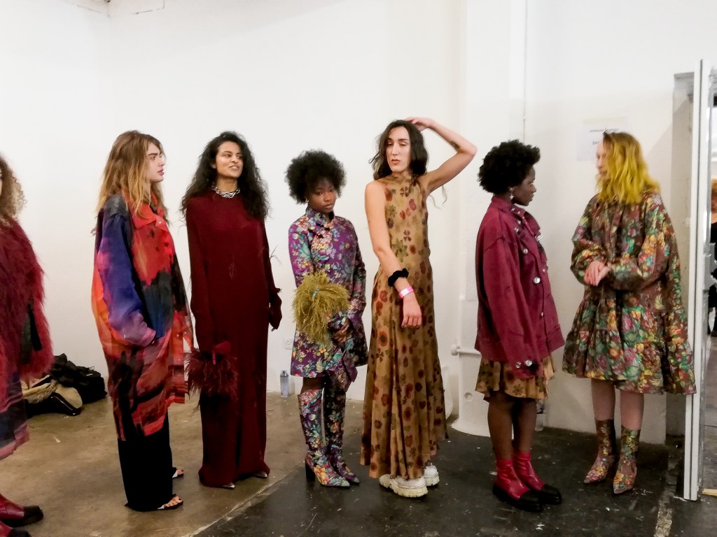 I found I was in the backstage area of the Marques Almeida show, with the test run in full swing. I took pictures of the models, asking them to pose for me. The only camera I had with me was my phone, since I hadn’t planned to do anything of the sort.